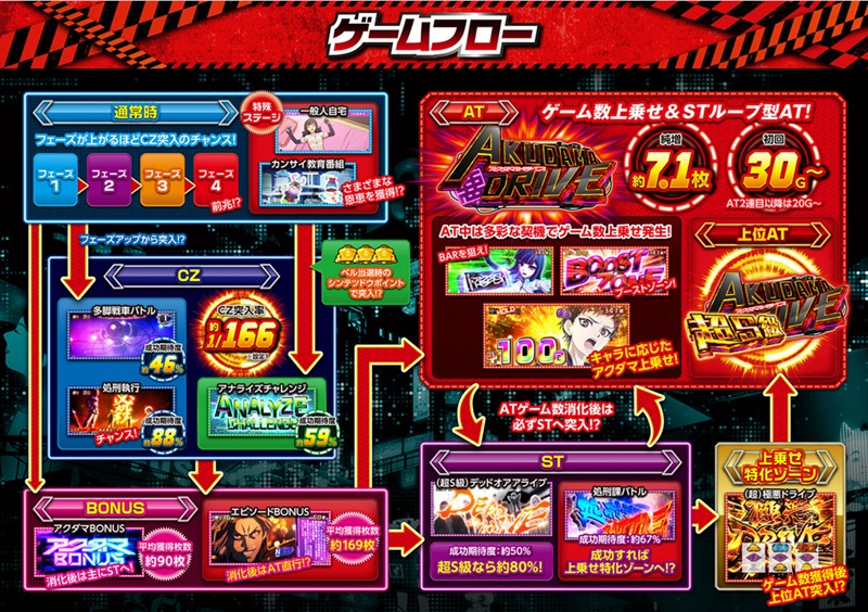 ※ アクダマ目が約1/5.9の高確率状態となりアクダマ目停止でアクダマ上乗せ発生