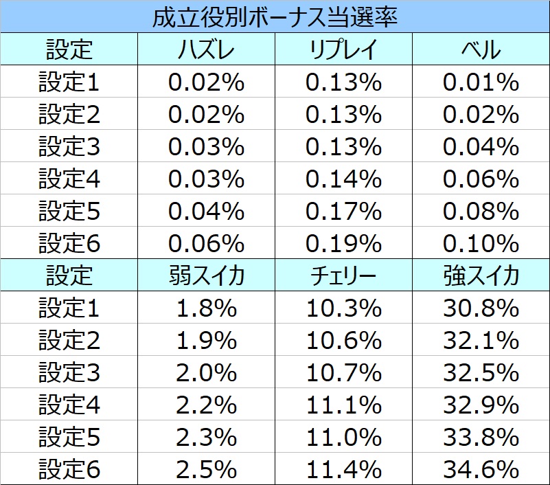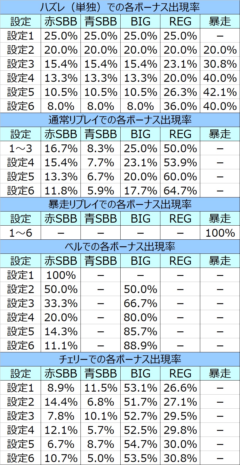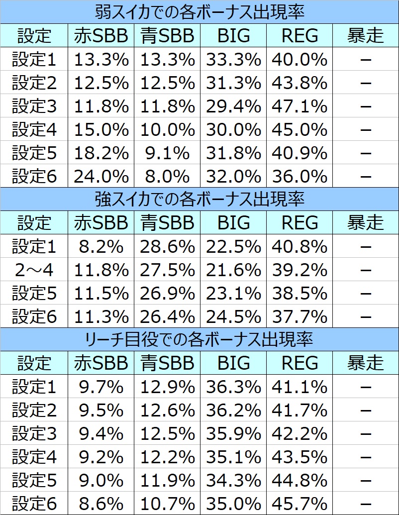 8/29更新! 契機別各ボーナス出現率を設定狙い項目に追記しました。
