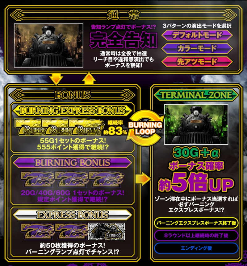 ※ バーニングエクスプレスボーナスとターミナルゾーンのループ率