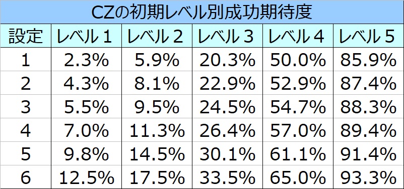 9/4更新! CZ最終レベル別期待度を設定狙い項目に追記しました。